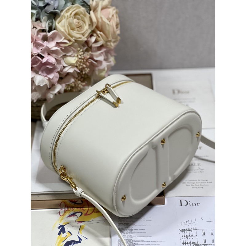 Crafted from calfskin, it features the CD signature embossed on the top and bottom. The interior is elegant and spacious with a two-way zip. The sturdy leather top handle and adjustable, detachable shoulder strap make this pouch the ideal everyday companion by hand, over the shoulder or across the body.