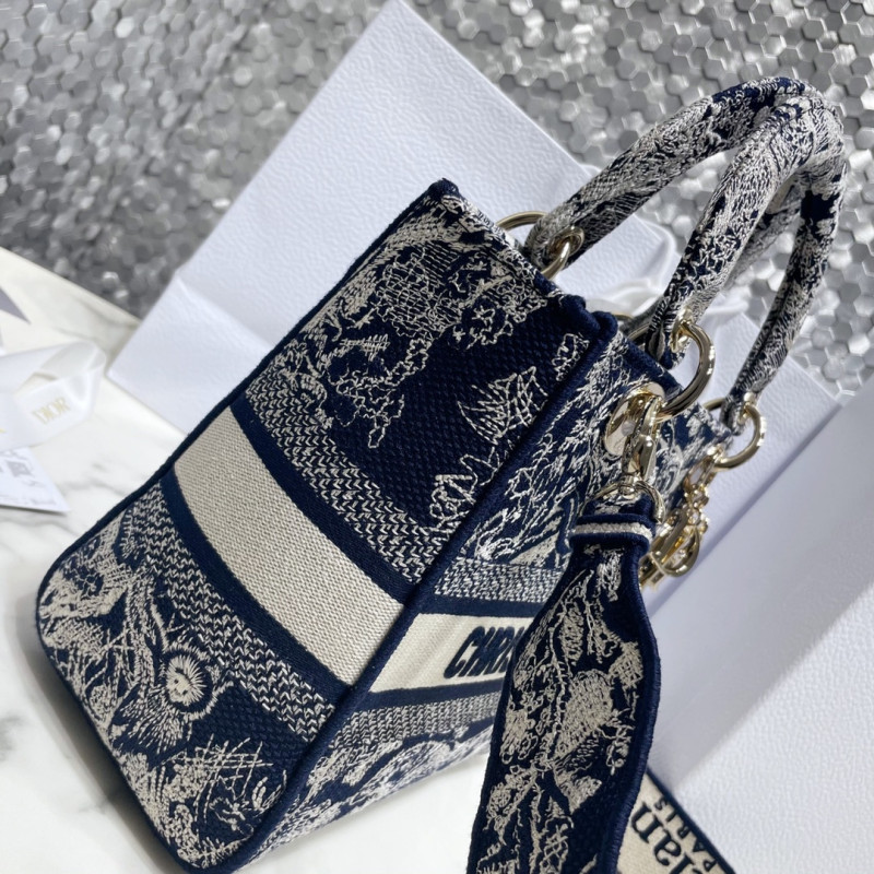 The 'CHRISTIAN DIOR PARIS' logo is embossed on the front, and it is equipped with a large double-sided detachable embroidered shoulder strap, which can be matched with different embroidered shoulder straps, and can be carried by hand or cross-body.