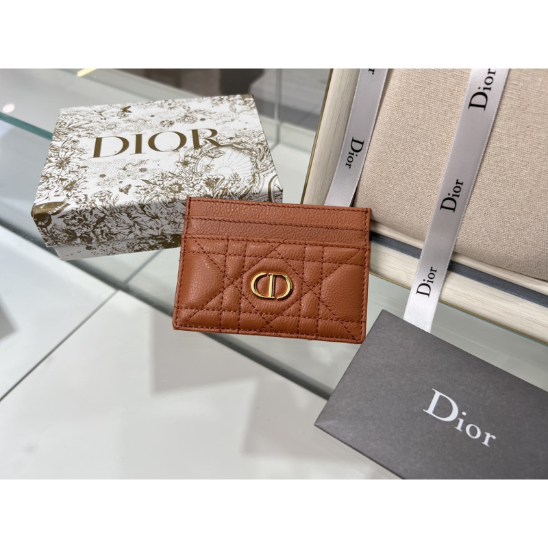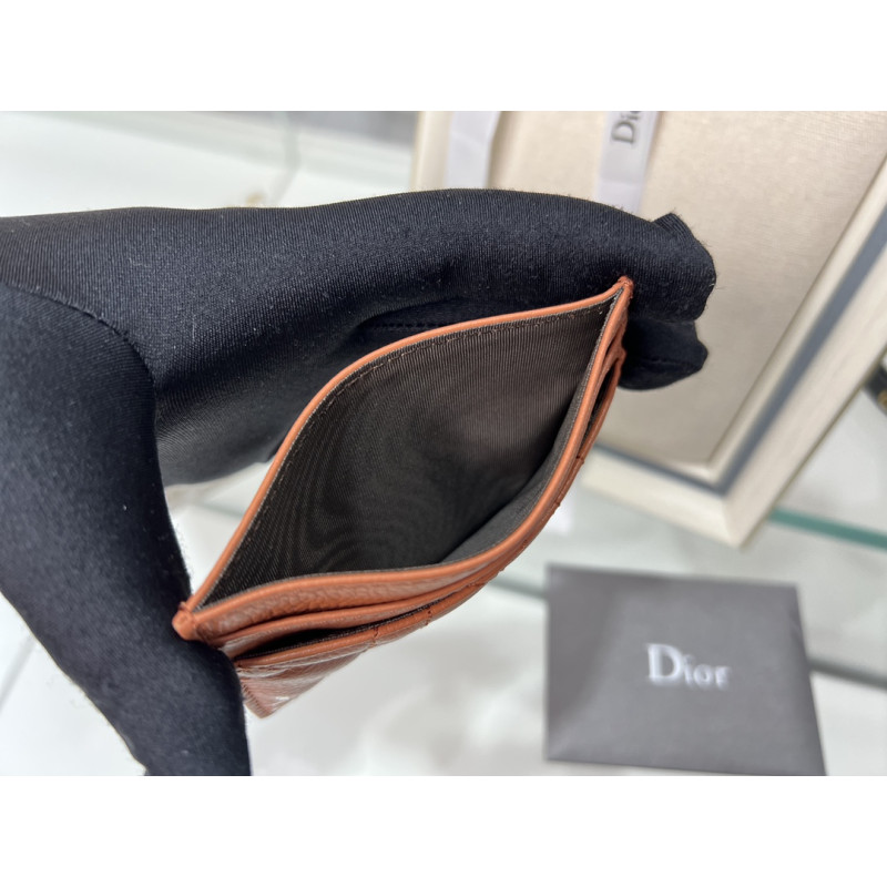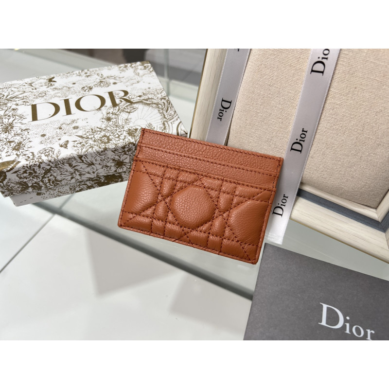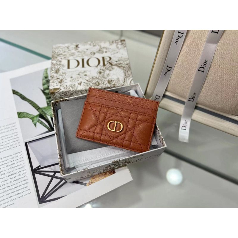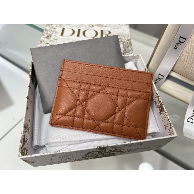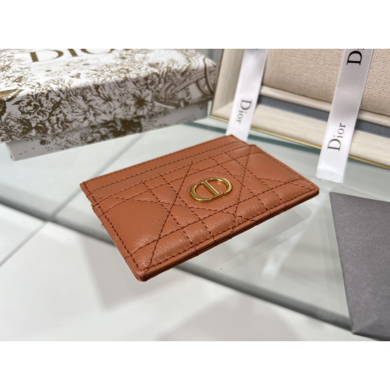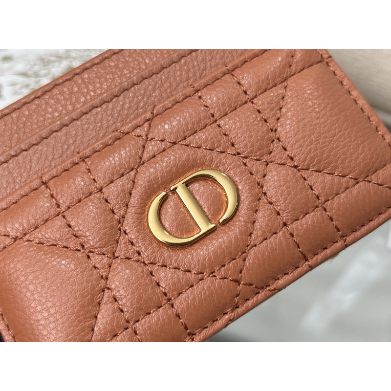 Crafted from soft calfskin with Cannage stitching, it features a 'CD' logo on the front. With five card slots, this sophisticated accessory fits anywhere and coordinates with other pieces.