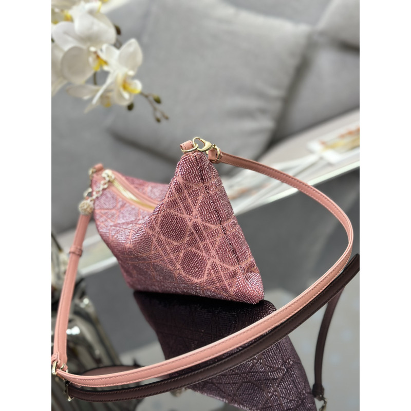 DetailIt features a classic cannage pattern. Hand-embroidered with 2mm glass beads. The adjustable and detachable leather spaghetti strap adds sophistication and adds elegance to evening looks.