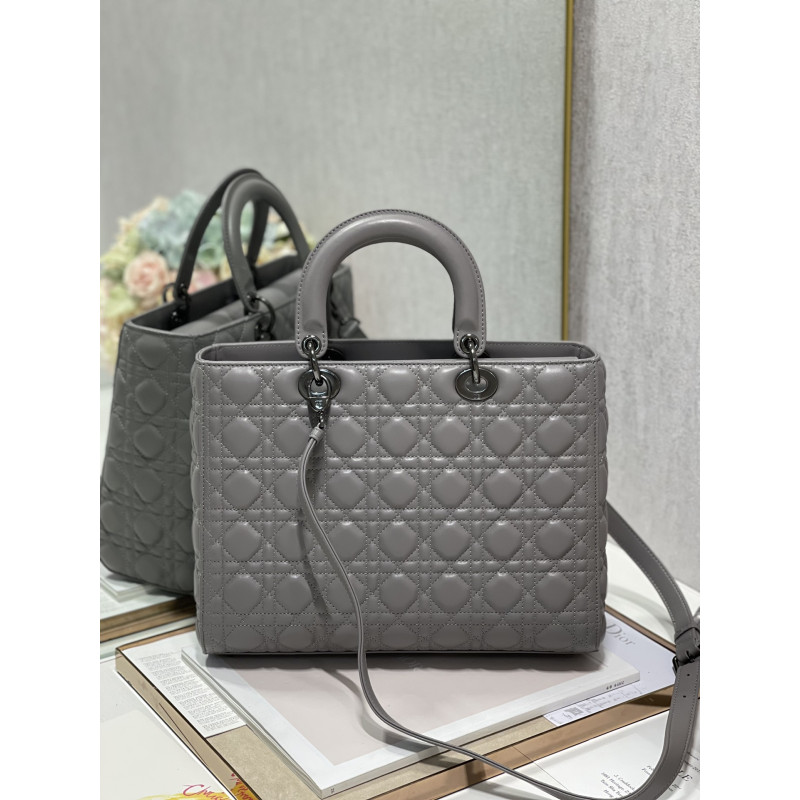 Crafted from black lambskin with Cannage stitching for an instantly recognizable quilted texture. Internal zipper pocket, large patch pocket, with detachable and adjustable thin shoulder strap, the bag can be matched with different embroidered shoulder straps, can be carried by hand, on the shoulder or crossbody, making it an ideal evening companion.