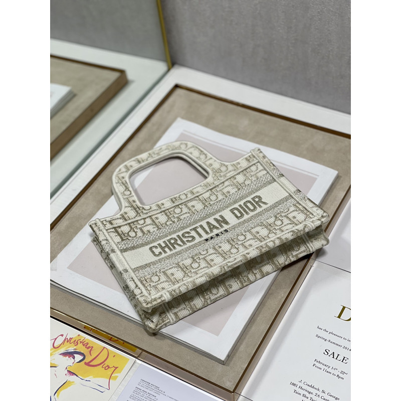 DetailFully embroidered with the Toile de Jouy motif and featuring the Christian Dior Paris signature on the front, this piece can be carried by hand and layered with other Dior Oblique creations.