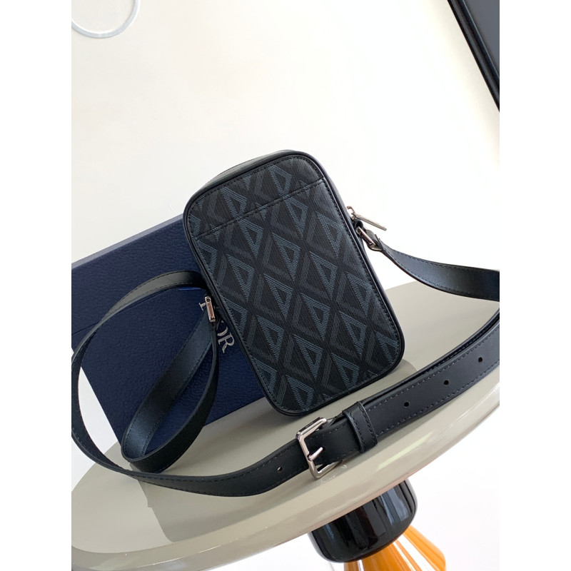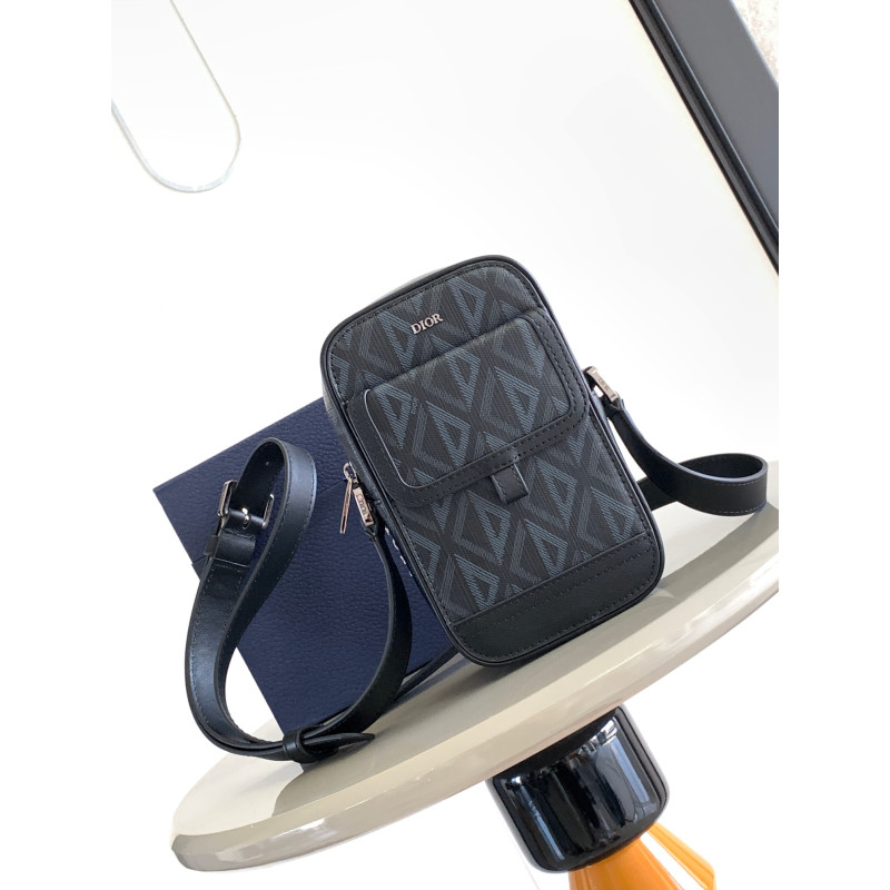 Crafted from Dior black CD Diamond canvas and smooth calfskin, this piece is adorned with a “DIOR” signature on the front. It features a spacious main compartment, a front flap pocket for storing small daily essentials, a slip pocket on the back, and a detachable shoulder strap for versatile carrying options.