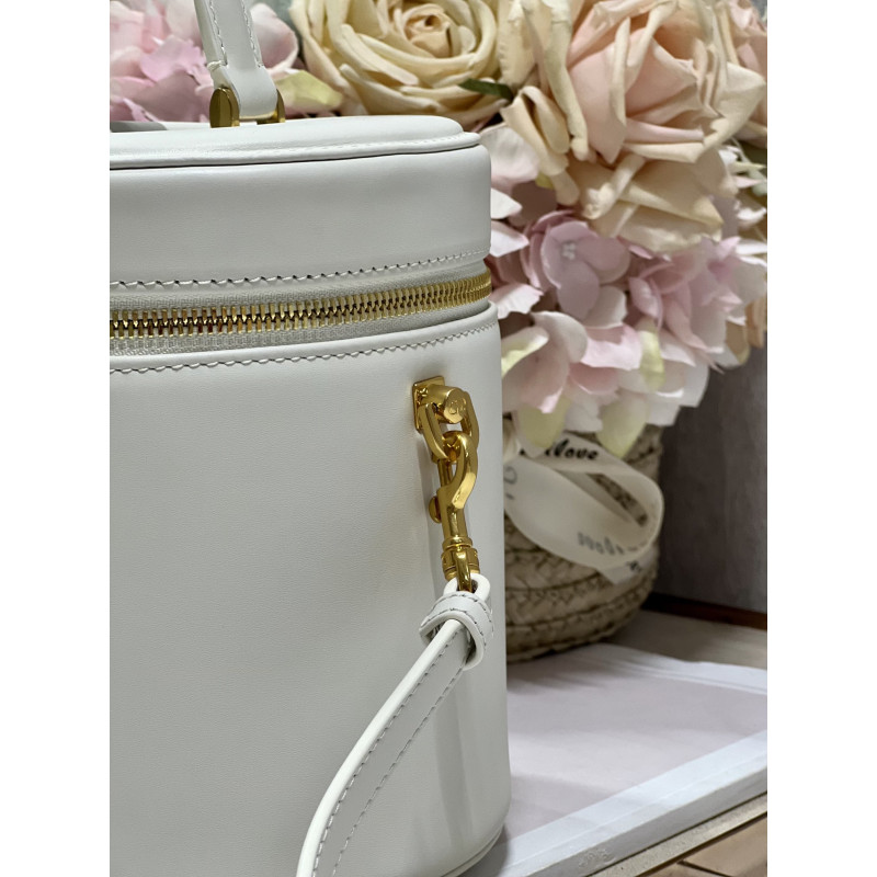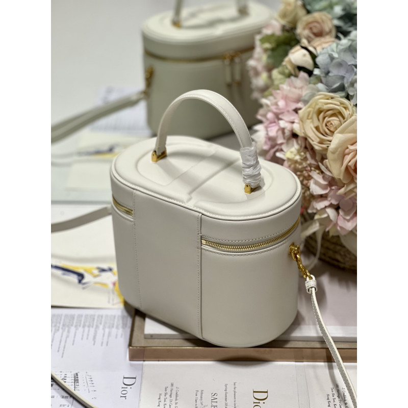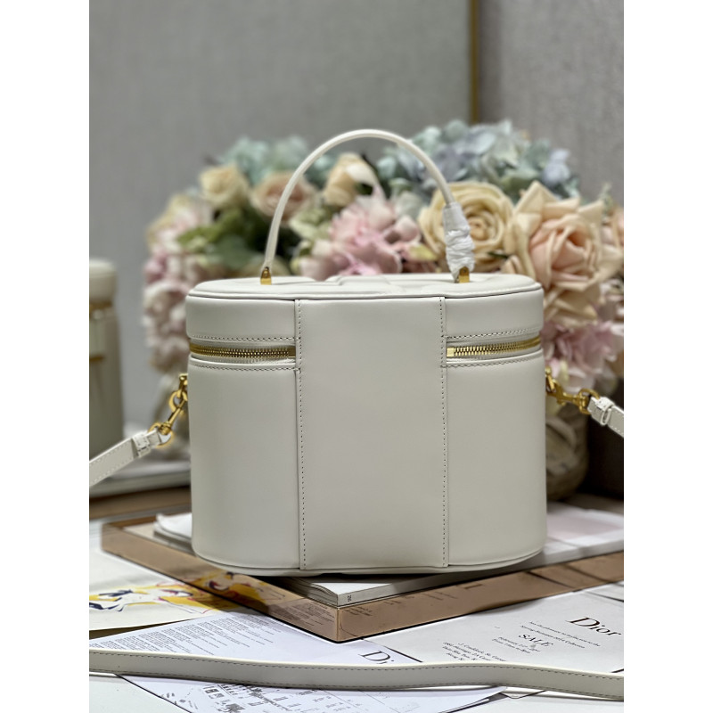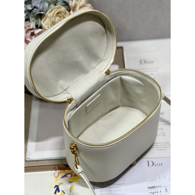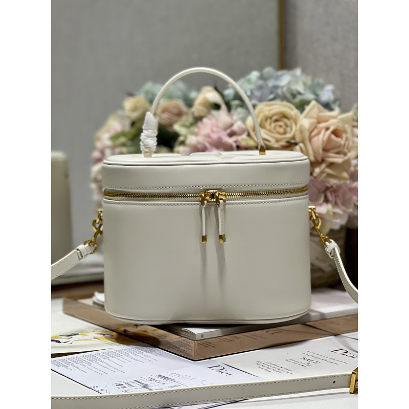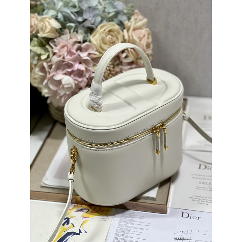 Crafted from calfskin, it features the CD signature embossed on the top and bottom. The interior is elegant and spacious with a two-way zip. The sturdy leather top handle and adjustable, detachable shoulder strap make this pouch the ideal everyday companion by hand, over the shoulder or across the body.