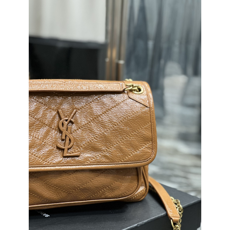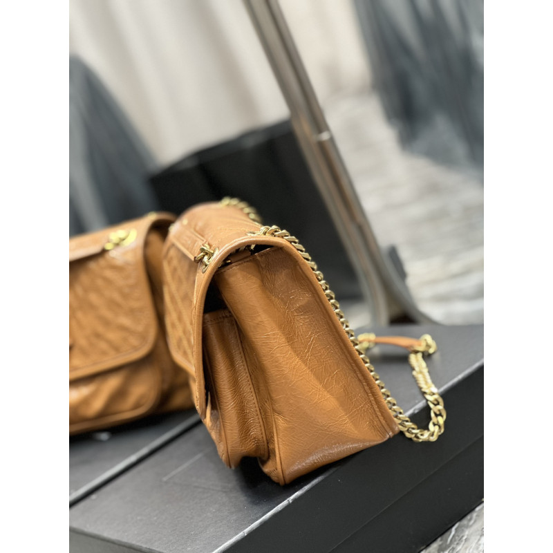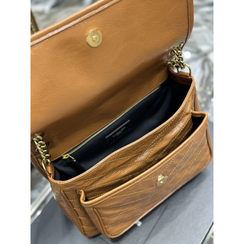 Front flap with magnetic snap closure and signature YSL signature covered in leather. Chain and leather convertible shoulder strap, exterior: a magnetic pocket on the back, interior: 1 main compartment, 1 open pocket, 1 zip pocket, 1 pocket under the flap.